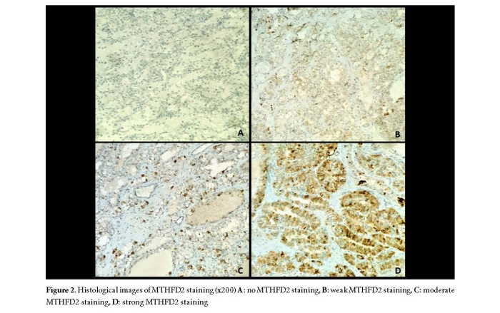 Significant associations weren’t found between MTHFD2 expression and histologic subtype, pN stage, recurrence, or rhabdoid features (p > 0.05) (Table 2). Likewise, no significant correlations were identified with age (p = 0.37), gender (p = 0.64), tumor size (p = 0.98), lymphovascular invasion (p = 0.30), or perineural invasion (p = 0.31).